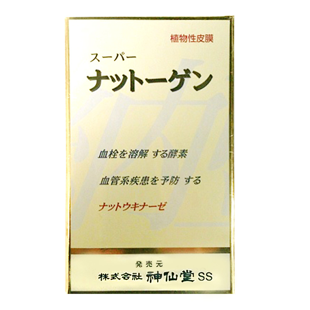 本製品《スーパーナットーゲン》は、納豆菌培養エキスの主成分であるナットウキナーゼ、紅麹粉末、黒酢もろみ未、ビタミンE、大豆レシチン等を植物性カプセルに配合した最新の栄養補助食品です。本品の主成分であるナットウキナーゼは納豆のネバネバに含まれている成分として大変注目されています。日本が世界一の長寿国であるということで、欧米では日本食、その中でも特に納豆が素晴らしい健康食として絶賛されています。近年、健康に良い大豆の特性が、肉から大豆製品(豆腐や納豆)に移ってきています。この傾向は今後も続くものと考えられます。本製品カプセルは植物性被膜を使用しておりますので、べジタリアン素食(精進料理)の方にも安心してお召し上がりいただけます。